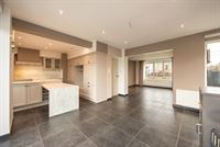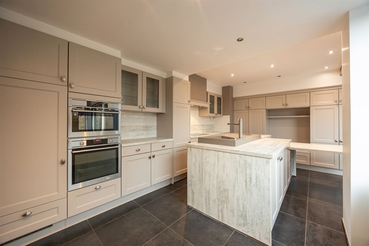 Bij het betreden van de woning kom je terecht op het gelijkvloers, waar zich de lichtrijke leefruimte bevindt met grote raampartijen die zorgen voor een aangename lichtinval. Aansluitend ligt de open keuken met voldoende kastruimte en werkoppervlak.