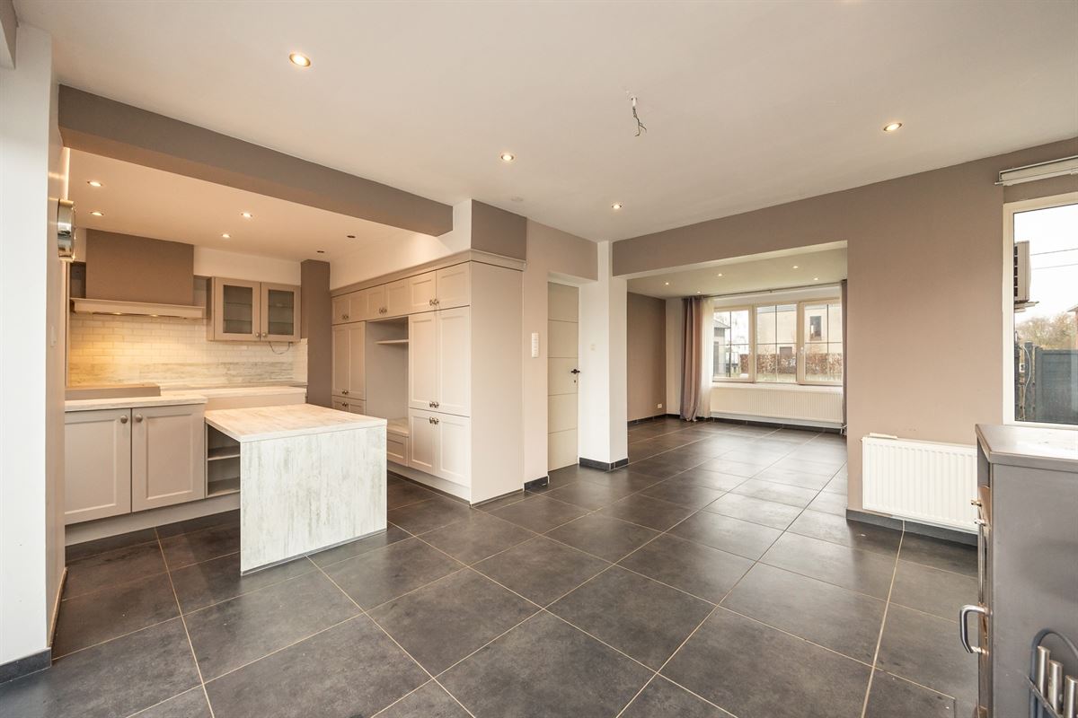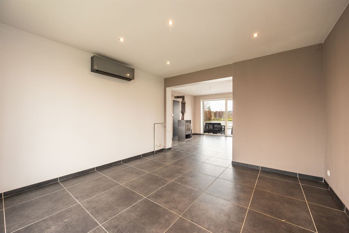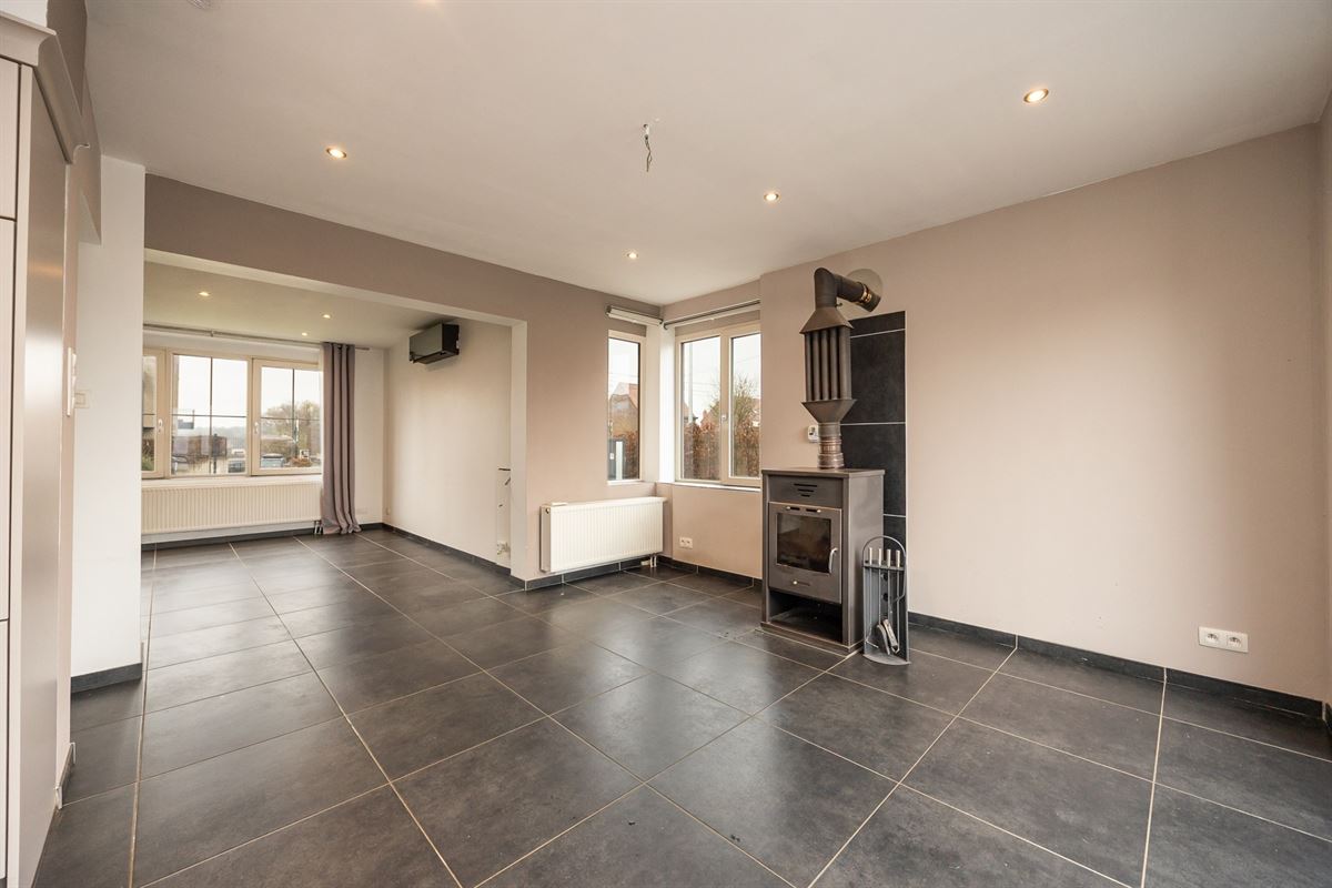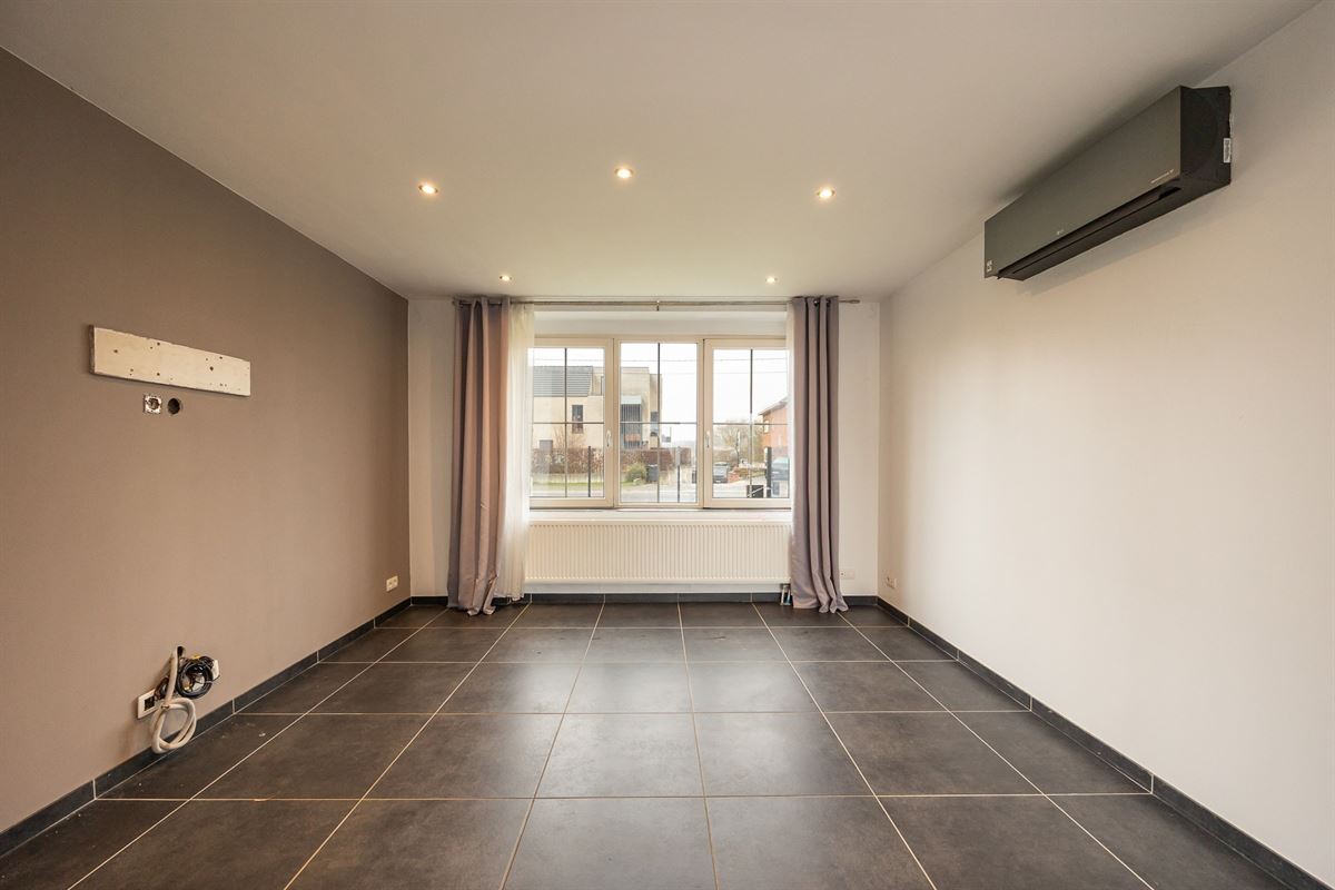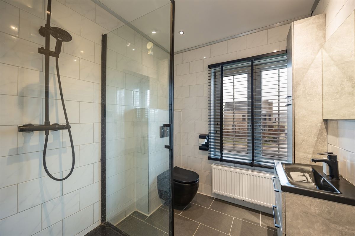 Via de schuifdeur heb je directe toegang tot het terras en de tuin. Op het gelijkvloers bevindt zich bovendien een eerste badkamer, wat extra comfort en flexibiliteit biedt.